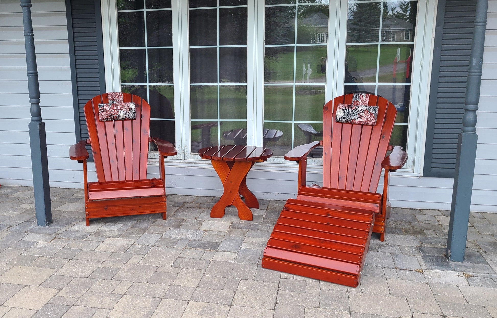 Our Royal Patio Set includes two Royal Muskoka chairs, one Royal Ottoman and one 24" round side table, and ships partially assembled. Note; this beautiful set if made in Ipe wood is shipped fully assembled. An upgrade to an oval table is available just let us know and we will make the change for you.
