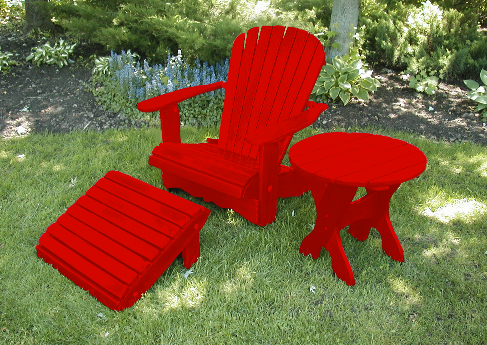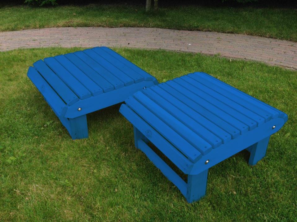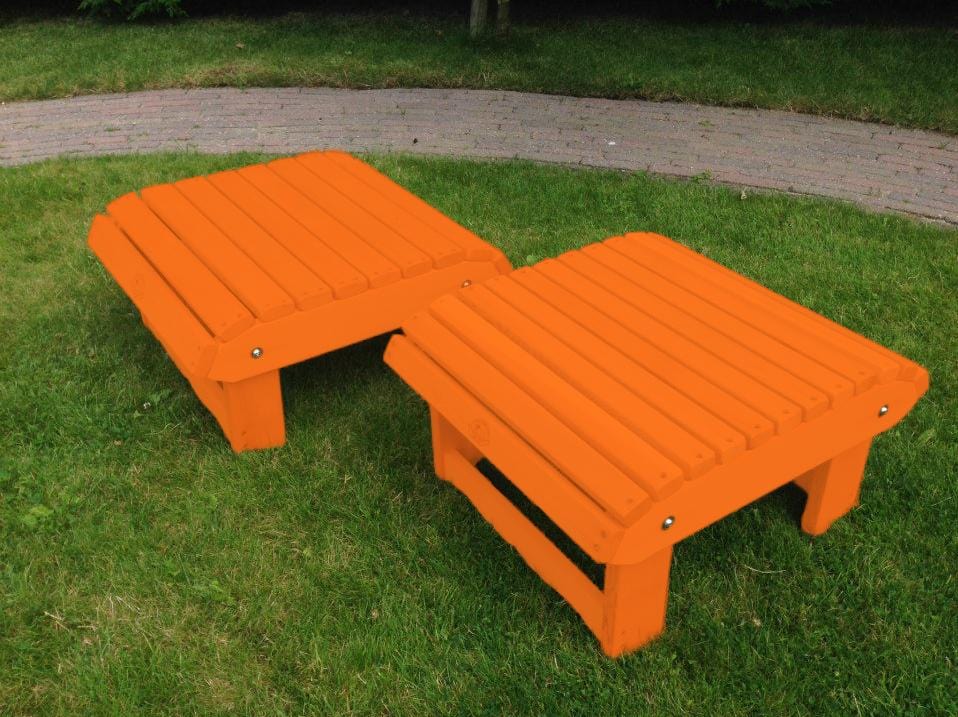 Our unique two-position ottoman is highly versatile. In the horizontal position, it can serve as a footrest, an extra seat, or even a table, in slanted position it turns your Adirondack chair into a comfortable lounge chair. Buy yours today.